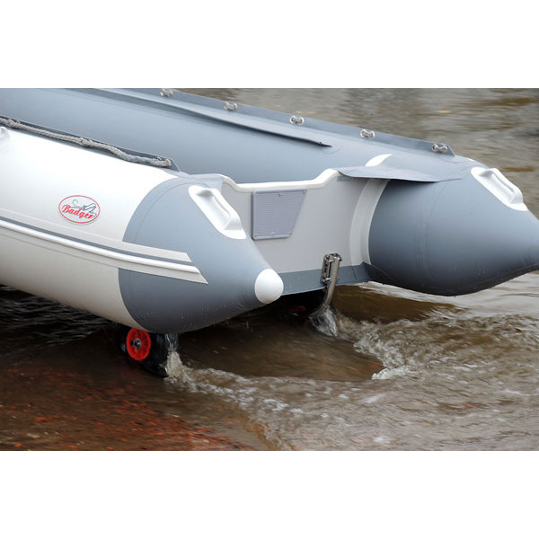 От брызг пассажиров защитят комингсы на корме, высокий борт и привальный брус по периметру. Попавшая в кокпит вода оперативно выводится через современный сливной клапан. Транец усилен по верхнему торцу П-образной накладкой, а по нижнему – пластиной интерцептора. Мотор 30 л.с. превратит лодку в быстроходное мощное судно, способное буксировать ватрушку или лыжника. Classic Line 420 – безопасная в плавании лодка. В общей сложности она имеет четыре изолированных камеры плавучести: три внутри баллона плюс киль. Каждая наполняется воздухом через свой клапан. При сборке весь воздух спускается одним нажатием кнопки.